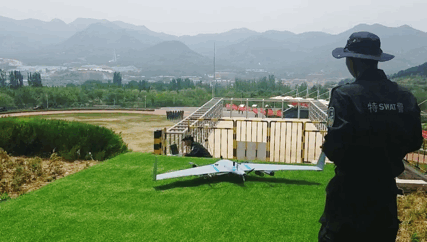 距离驻地15km直线距离范围可在13分钟内抵达现场;10km直线距离范围在9分钟内抵达现场;5km直线距离范围可在6分钟内抵达现场。在全市多地部署“分布式”无人机起降点,民警在作战指挥中心远程控制无人机起飞,规划航线自主飞行,足不出户即可通过操纵云台对地面进行侦察、取证、搜索、监控。无需民警携带无人机赶赴现场,大大提升了响应能力、滞空时间和作业半径。固定翼无人机航程远、覆盖广、续航久的战略价值得到充分发掘,正在成为城市上空应急处突、指挥调度、巡查监控的空中堡垒。
